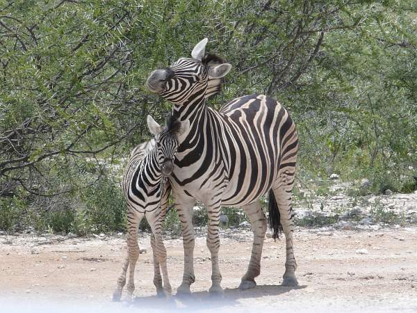 A slightly different variety of Zebra - and a mother with a calf. Zebra are fairly common in the park.