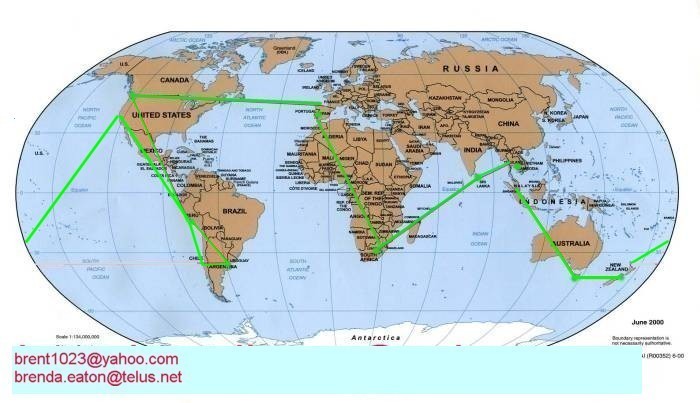 We flew on a British Airways 6 Continents ticket - which allows connections to 6 continents with up to 4 flight within each continent. Given the distance we travelled, this turns out to have been quite an inexpensive way to travel. The green dots show places we have visited. For further information about a part of the trip, move the mouse pointer to a green spot and click.